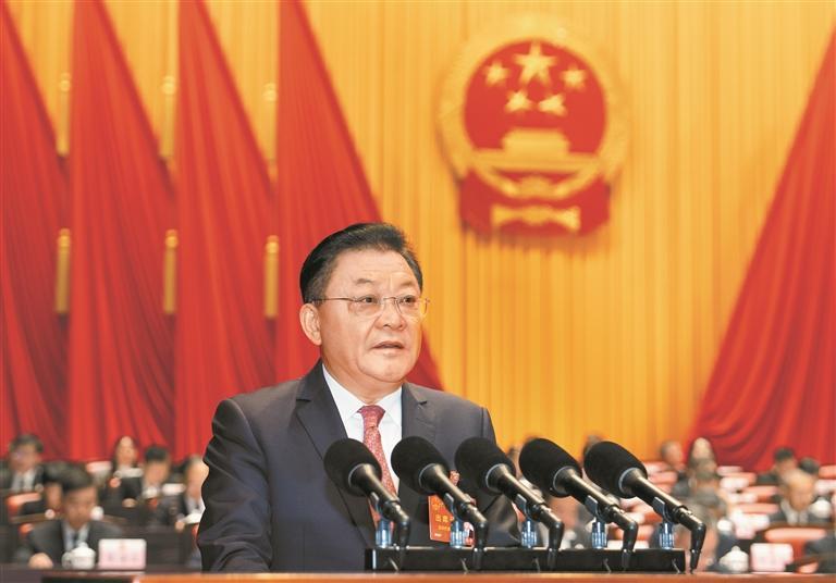 王伟中在报告中回顾了过去一年的工作。他说,2024年是中华人民共和国成立75周年,是广东改革发展历程上具有重要意义的一年。习近平总书记亲临澳门视察并出席庆祝澳门回归祖国25周年系列活动,亲临广东视察横琴粤澳深度合作区,发表一系列重要讲话、作出一系列重要指示,为横琴合作区、粤港澳大湾区建设和广东发展进一步指明前进方向、注入强大动力。这一年,习近平总书记向深中通道建成开通、中山大学建校100周年、黄埔军校建校100周年、“梦想”号大洋钻探船建成入列、“读懂中国”国际会议(广州)、从都国际论坛致贺信,全省人民深受鼓舞、倍感振奋。我们坚持以习近平新时代中国特色社会主义思想为指导,全面贯彻党的二十大和二十届二中、三中全会精神,深入学习贯彻习近平总书记对广东系列重要讲话和重要指示精神,坚决贯彻党中央决策部署,认真落实国务院工作要求,在省委正确领导下,在省人大及其常委会、省政协监督支持下,扎实落实省委“1310”具体部署,以走在前列的昂扬姿态,奋力推动中国式现代化的广东实践迈出新的坚实步伐。