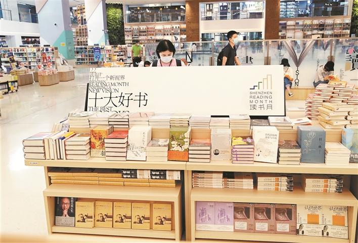 市民昨日在中心书城读书月推荐好书柜台前浏览选购图书。