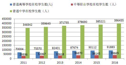 图12 2011-2016年各类教育在校生人数