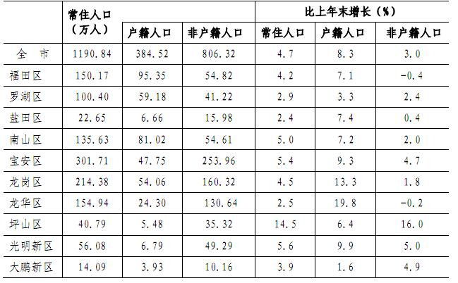 5.公报中宝安区不含光明新区,龙岗区不含大鹏新区。