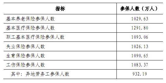 年末全市有1029.63万人参加了基本养老保险,1026.13万人参加了失业保险。