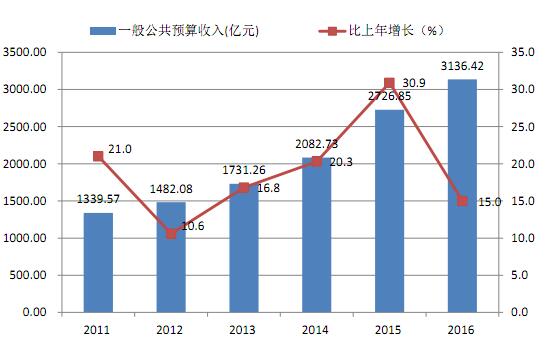 图4 2011-2016年一般公共预算收入及增长速度