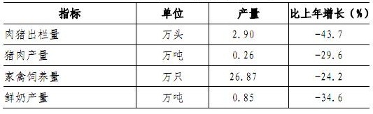全年农作物播种面积74165亩,比上年增长2.5%,其中,蔬菜播种面积72342亩,增长10.9%。水果播种面积32287亩,下降9.0%。全年蔬菜产量8.24万吨,增长30.8%;水果产量1.23万吨,增长206.5%。主要畜产品产量见表4。