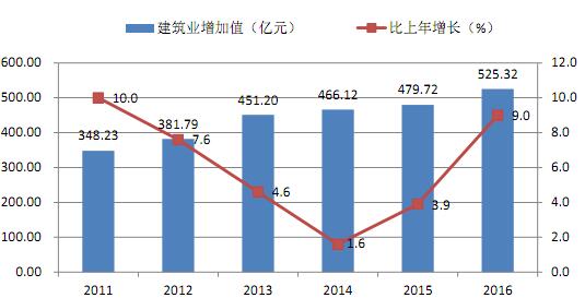 全年建筑业增加值525.32亿元,比上年增长9.0%。