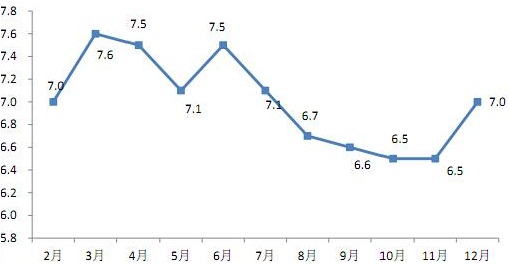 图2 2016年居民消费价格单月同比上涨幅度