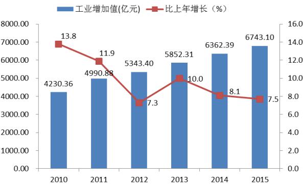 全年规模以上工业增加值6785.01亿元,比上年增长7.7%。其中,国有企业增加值9.06亿元,下降9.1%;股份制企业增加值3743.60亿元,增长12.2%;外商及港澳台投资企业增加值2996.45亿元,增长2.9%。分轻重工业看,轻工业增加值1197.86亿元,下降3.2%;重工业增加值5587.15亿元,增长10.2%。