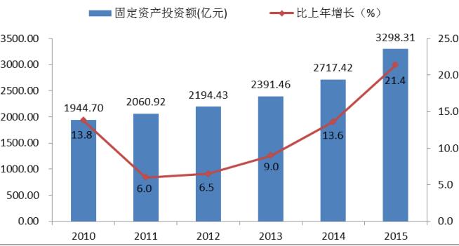 全年完成固定资产投资额3298.31亿元,比上年增长21.4%。其中,房地产开发项目投资1331.03亿元,增长24.5%;非房地产开发项目投资1967.27亿元,增长19.4%。