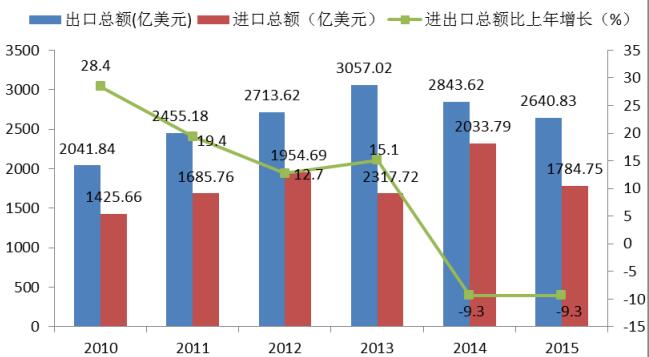 表12 2015年对主要国家和地区进出口总额及增长速度
