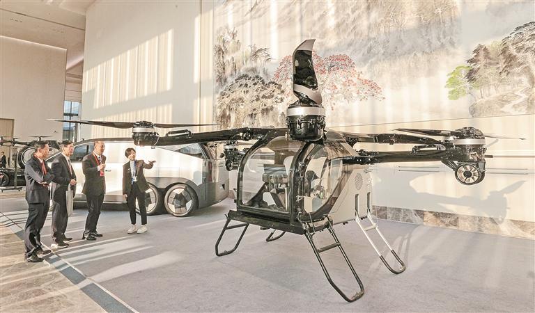 全省高质量发展大会综合展区,参展企业向国内外嘉宾介绍广东高科技产品。