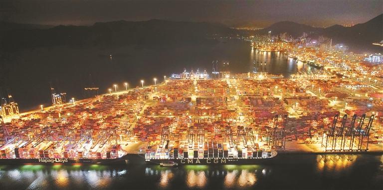 春节假期,我市外贸红红火火,盐田港通宵达旦运转,货轮如织,一片春意盎然的景象。