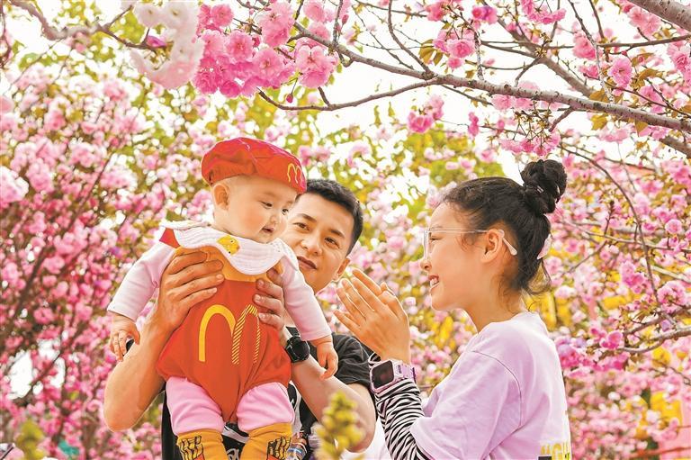 光明樱花节现场,浪漫樱花为游人织就一场粉红梦境。