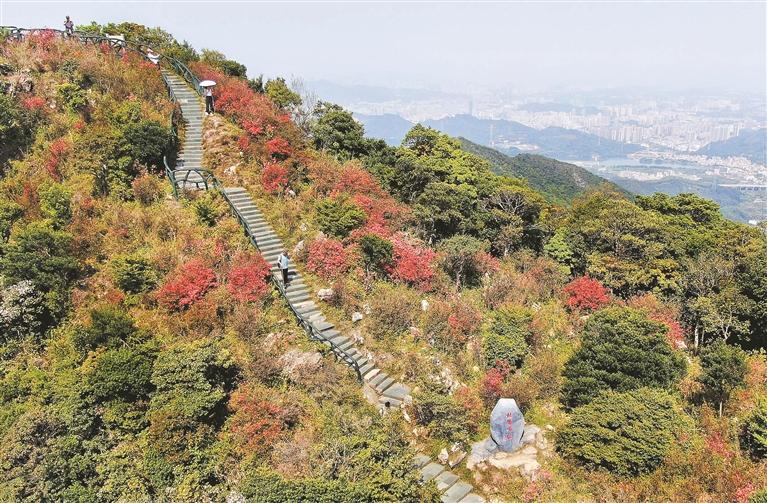 近日,梧桐山公园豆腐头区域,映山红迎来盛花期。漫山遍野的花朵竞相绽放,将整个山脊线两侧装点得如天边红霞般绚烂。