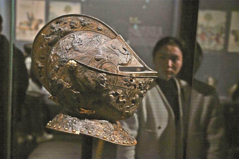 法国制仪仗头盔做工精美,展现了高超的金属加工技艺。