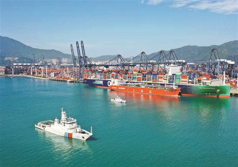 近年来,深圳海事部门持续打好“组合拳”,通过系列创新举措推动盐田港集装箱吞吐量不断攀升。一方面,不断深化港区船舶通航效率。支持盐田港构建17个内陆港、32条海铁联运线路、14个大湾区组合港形成的盐田港口多式联运模式。有效运行深圳大鹏湾水域推荐航线,进出盐田港船舶平均待泊时间下降41.7%。另一方面,持续优化海事政务服务。大力推进“不见面”行政审批,实现高频海事业务“一站办结、立等可取”。推出国内首个集装箱船舶定期进出口岸“周票制”,节省人力和时间成本近80%。此外,积极推进清洁能源动力船舶的示范应用,成功保障深圳国际航行船舶生物燃料首船加注,引导航运绿色低碳转型发展,助力深圳打造更高水平国际航运枢纽。