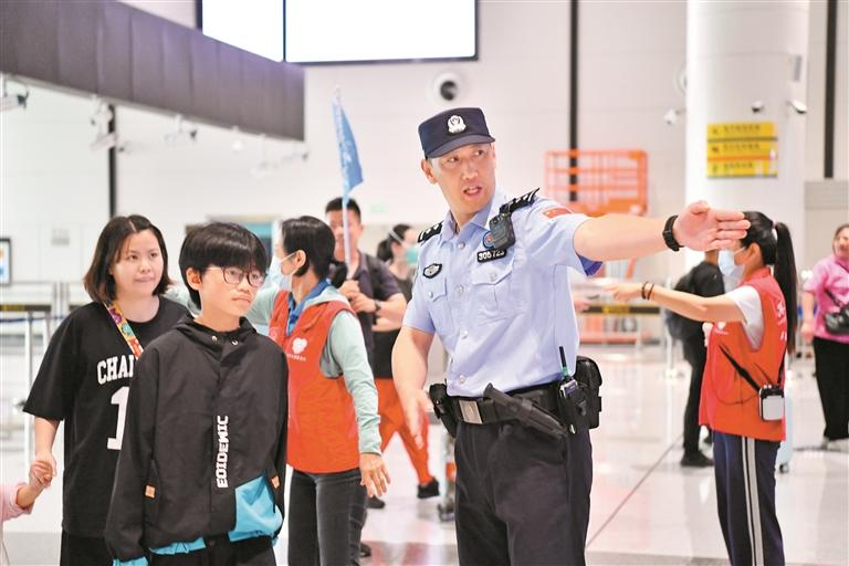 莲塘口岸边检人员服务出入境旅客。