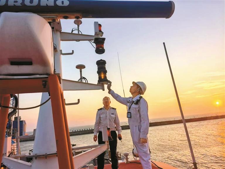 宝安海事局工作人员检查设备安全。