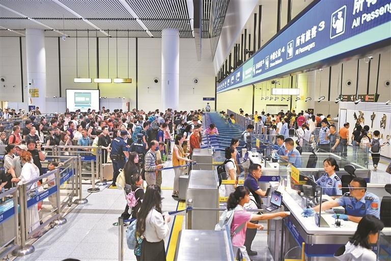 昨日,记者从深港口岸部门获悉,“五一”假期与广交会、香港公众假期重合,假期经济、消费提振、会展引流“三重效应叠加”,推动深港口岸客流持续高位运行。据统计,5月1日至5月5日,出入境人员超451万人次,同比增长34%,其中入境人员约225万人次,出境人员约226万人次。深圳口岸日均保障进出境旅客约90.3万人次,客车约2.0万辆次,同比分别增长33.7%、24.0%。