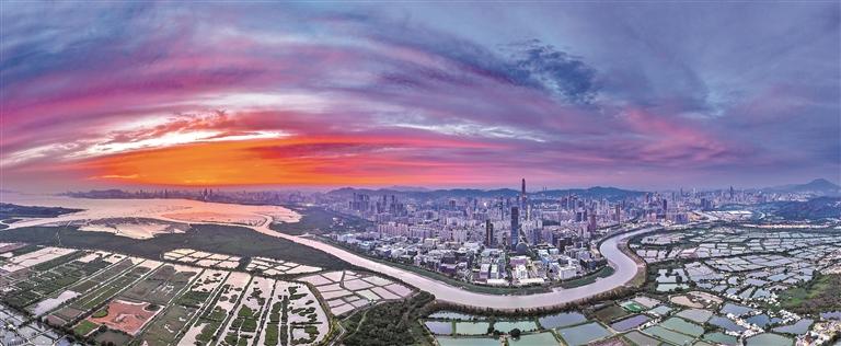 昨日傍晚,经历持续降雨的深圳迎来绚丽晚霞。漫天红紫色霞光浸染天际,与深圳湾粼粼波光构成海天之间的动态画卷。据了解,连日降雨使大气水汽处于近饱和状态,配合夕阳低角度照射,引发“霞光漫反射”现象。