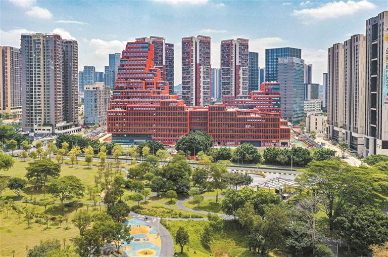 位于龙华区高新技术产业园的深圳市创新创业无障碍服务中心崭露头角,项目计划今年建成投用。中心采用“山形建筑”设计理念,通过“垂直森林”“康复花园”“灵活系统”“阳光十字”“温馨立面”五大设计策略,使建筑与周边自然环境有机融合,是智能建造与人文关怀融合的创新实践。项目全面建成后将成为国内规模领先的超大型残障人士公共服务综合体。