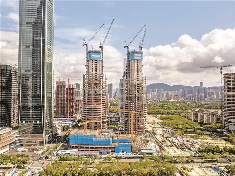 “我们自主研发的贝雷式智能顶升钢平台就像一个‘空中作业工厂’,能为结构施工提供安全、便利的施工作业条件。”中建五局C塔项目技术经理张志超介绍,这座“空中造楼机”集成了混凝土浇筑、模板支设、钢筋绑扎、钢结构吊装等作业平台,同时覆盖3个半楼层,构成立体交叉作业空间,为工人们在高空中提供工厂化作业环境及全天候作业条件,大大提高施工效率,核心筒结构最快可实现3天一层。此外,该平台顶部堆载能力超300吨,还可抵御17级台风,大大提高了安全系数。