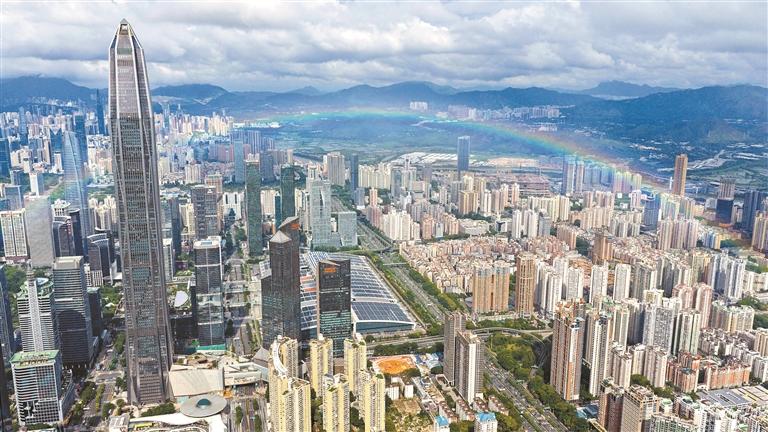 昨日深圳,连日降雨停歇。雨过天晴,一道美丽的彩虹横跨城市上空,为鹏城增添了几分绚丽色彩。