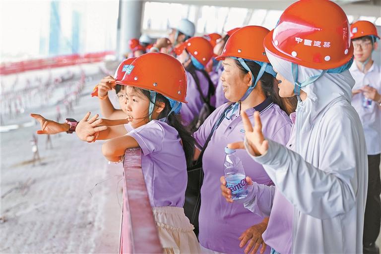 图为建设者家庭们一同参观了中建科工承建的前海博物馆项目。