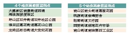昨日,深圳市疾控中心发布7月下半月(16日-31日)全市伊蚊密度监测结果,蚊媒传染病传播风险增大。全市设置的447个监测点,不合格的监测点中高密度有9个,中密度有45个,低密度有191个。