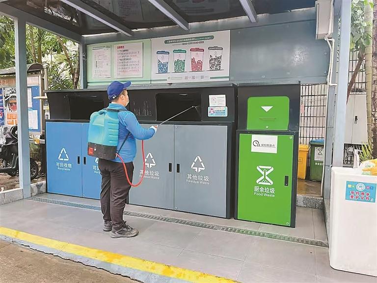 近日,在莲花山公园垃圾分类收集点,保洁人员手持水管清洗垃圾桶,消除卫生死角,对垃圾收集点和堆放点进行检查,确保垃圾堆放点干净少异味、无积水,阻止病媒生物的孳生。笔架山公园、荔枝公园、园博园等公园均有专业人员进行蚊蝇孳生地清理和消杀,深圳湾公园对公厕采取烟雾消杀,阳台山森林公园对排水渠和园内道路进行蚊蝇消杀等等,全市公园都行动起来,增设灭蚊灯、防蚊闸等“四防设施”,优先物理防蚊灭蚊,同时对一线作业人员集中开展防蚊灭蚊培训,加大日常管养蚊媒防控力度,重点整治公园建筑物和构筑物周边、公园边界、偏僻角落等薄弱区域。