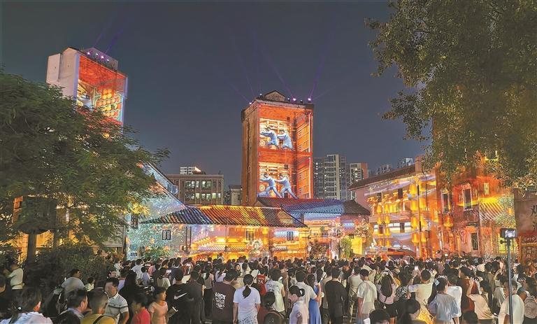 近来,深圳龙华观澜古墟凭借特色灯光秀,成为市民游客热门打卡地。