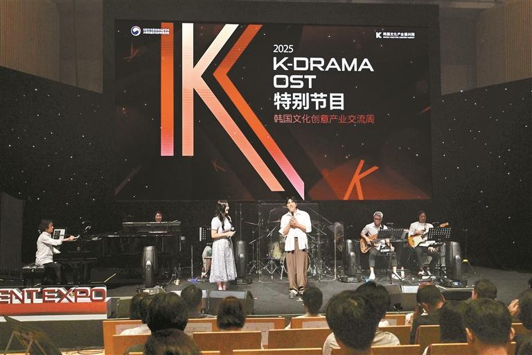 图为交流期间举办的K-DRAMA OST特别节目上,韩国歌手献唱。