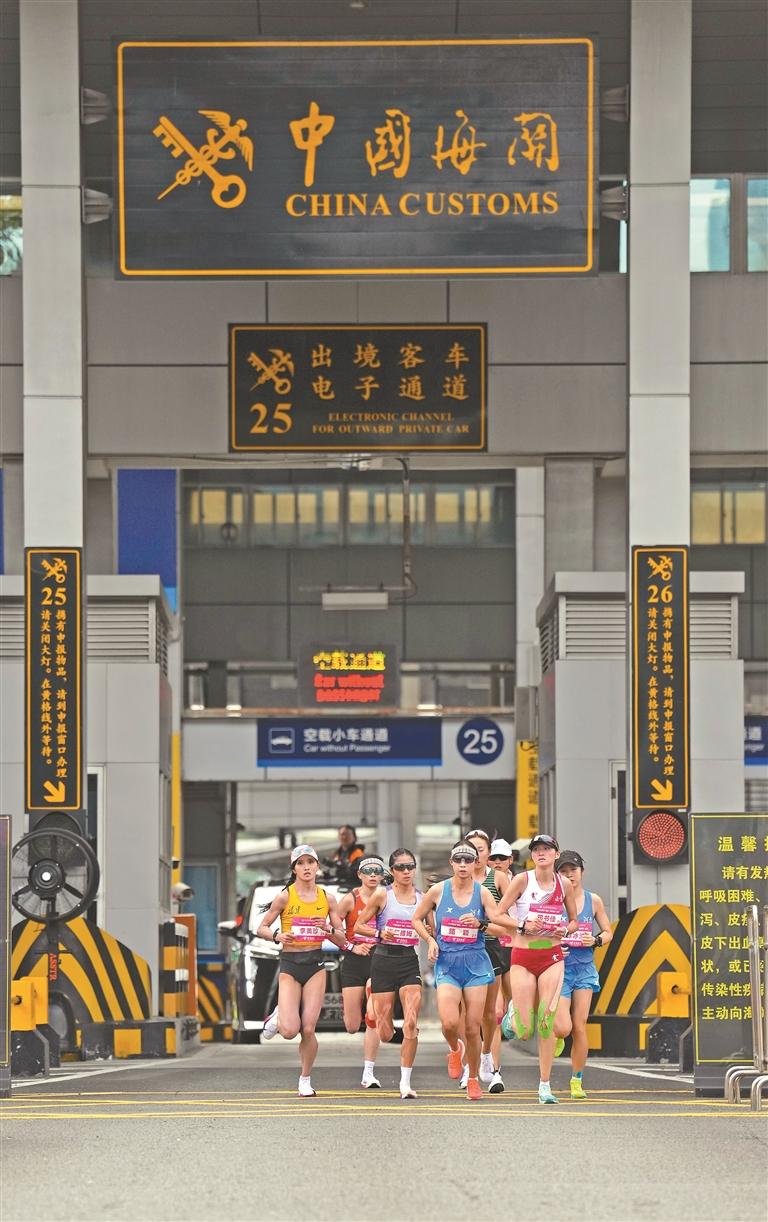 11月15日,十五运会马拉松赛,参赛选手在比赛中经过深圳湾口岸。