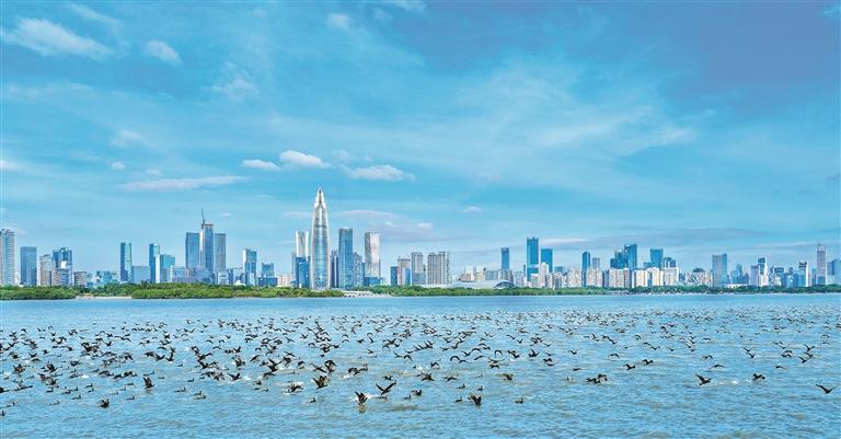 日前, 成群的鸬鹚飞临深圳湾,或游弋休憩,或展翅捕食,绘就一幅生机勃勃的冬日画卷。除鸬鹚外,深圳每年还吸引黑脸琵鹭等珍稀候鸟飞抵,尽显生态之美。