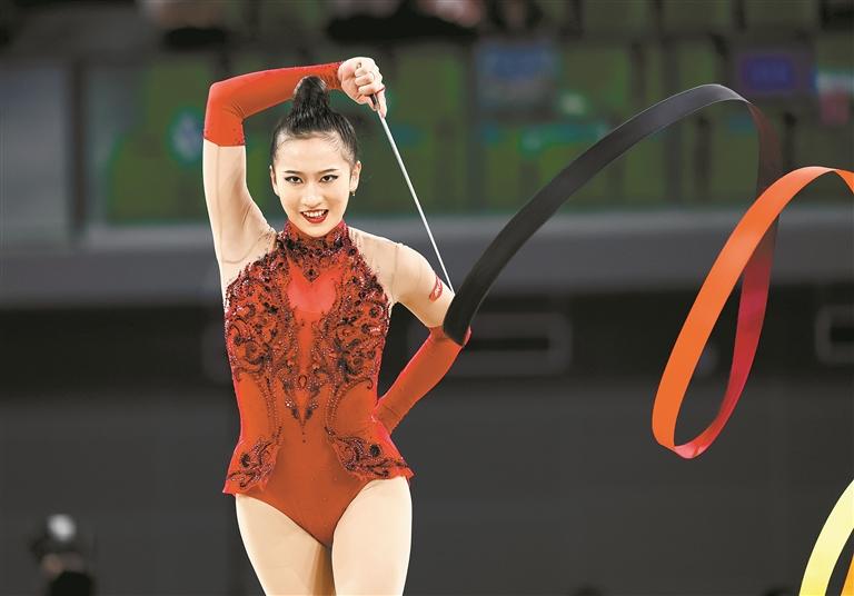 王子露在深圳坪山体育馆拿到自己艺术体操生涯的第一枚全运会金牌。