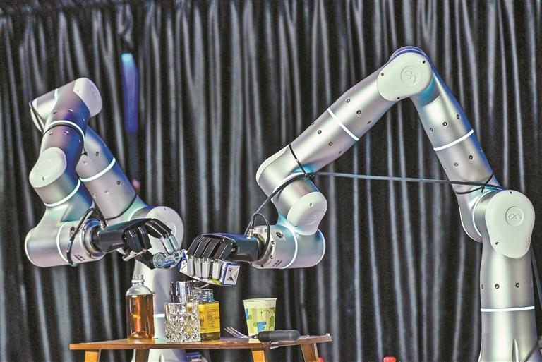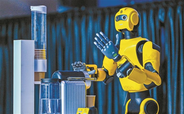 近日,2025年深圳智能机器人灵巧手大赛创意赛决赛举行。灵巧手作为机器人与物理环境交互的“关键末端执行器”,其技术突破将直接推动工业自动化、医疗辅助、特种作业等领域的革新。该项赛事基于家居生活、艺术创作等开放场景,聚焦灵巧手技术能力进行比拼,旨在推动这一重要技术的应用和发展,提升机器人智能化水平。图中,机器人正用灵巧手制饮品、冲咖啡。