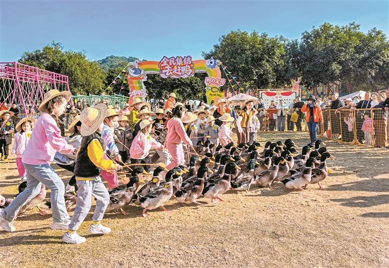 深圳光明农场“暖冬趣玩节”活动以“百人趣赶鸭,千人齐纳福”为主题,融合自然、文化与亲子互动,迅速成为出游家庭的热门打卡地。