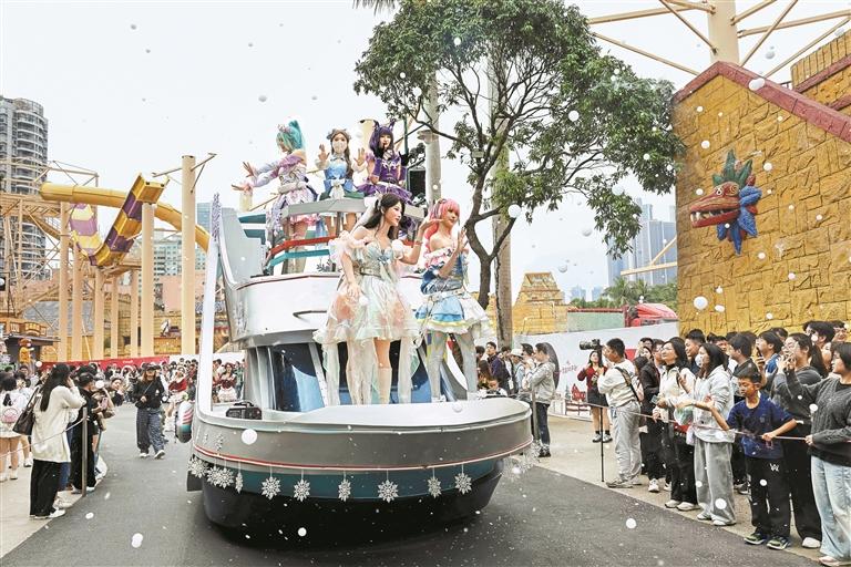 深圳欢乐谷推出“闪耀欢禧节”限定主题活动,以全园飘雪等特色内容,为市民打造了兼具仪式感与氛围感的假日体验。