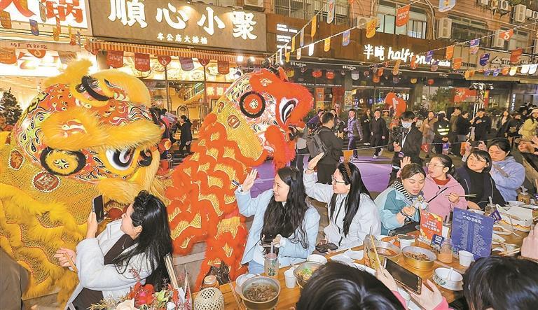 日前,深圳福田车公庙夜市热闹开场,吸引众多市民前来打卡。现场锣鼓喧天,舞狮表演灵动生风,与观众亲切互动,喝彩不断。夜市集美食、文创与互动打卡于一体,人头攒动,充满欢声笑语。
