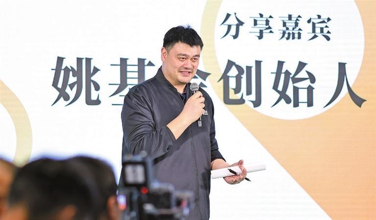 Yao Ming, former NBA star and founder of the Yao Foundation, shares his thoughts on reading during the launch of the “One Hour Off-Screen, Read and Love Nature” initiative in Shenzhen on April 23.