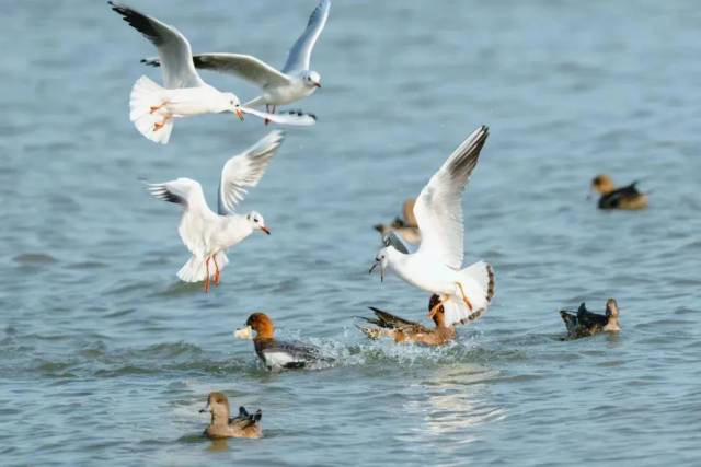 Nicknamed "water pigeons" for their plump charm, these gulls sport snow-white bodies, black-tipped wings, and caramel-hued beaks that turn orange in winter. Their playful antics enliven coastal walks.