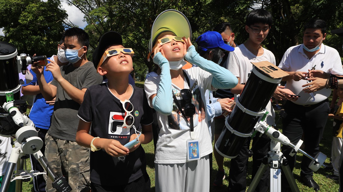 Residents observed a partial solar eclipse at Lianhua Hill Park in Futian District, Shenzhen on June 21.The first solar eclipse of this year coincided with the summer solstice, the longest day of the year.