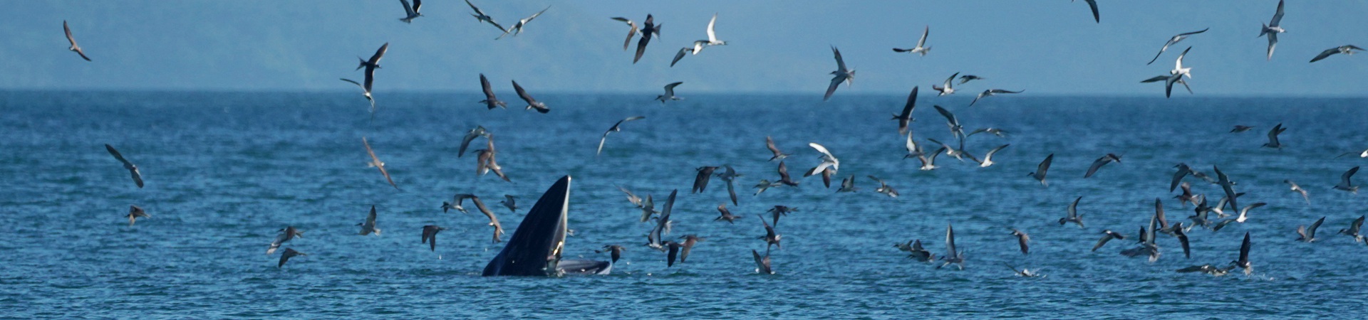 Bryde’s whales, mainly found in tropical and subtropical waters, are marked by three ridges in front of their blowhole, a dark grey back and a white or pink abdomen. It is listed as a Grade 1 protected animal by the National Forestry and Grassland Administration.