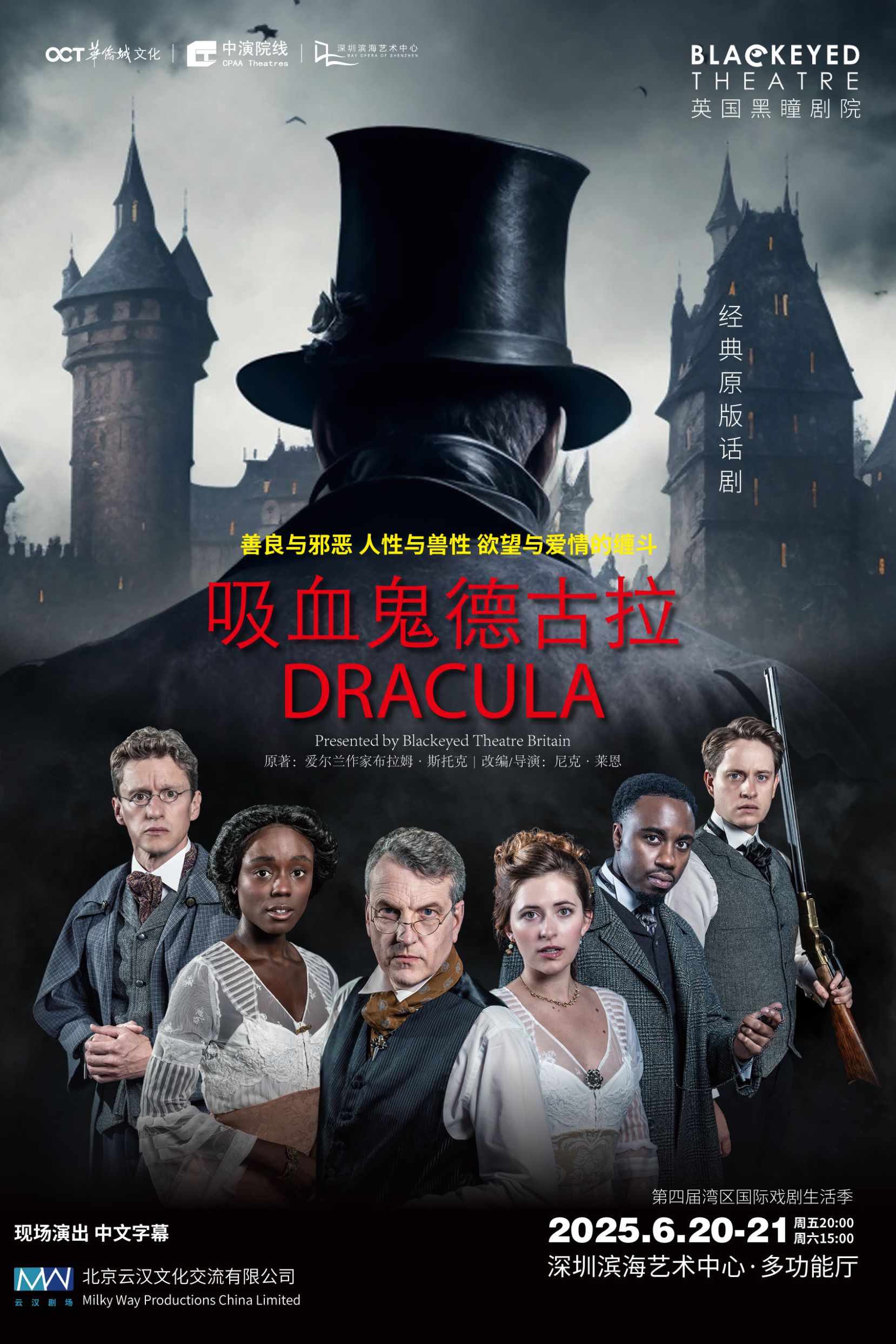 Presented by Blackeyed Theater from Britain, this adaptation of Bram Stoker’s classic vampire thriller blends Victorian Gothic elements with contemporary style. It features a haunting soundscape, powerful performances, and innovative design for a thrilling theatrical experience.
