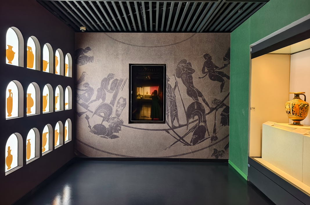 Interactive screens invite visitors to explore the exquisite craftsmanship behind ancient red-figure and black-figure pottery styles. AI-generated illustrations add a fresh and engaging dimension to the stories of the ancient Greek gods. In the museum lobby, an immersive video showcases animated pottery patterns, blending the charm of ancient civilization with modern technology.