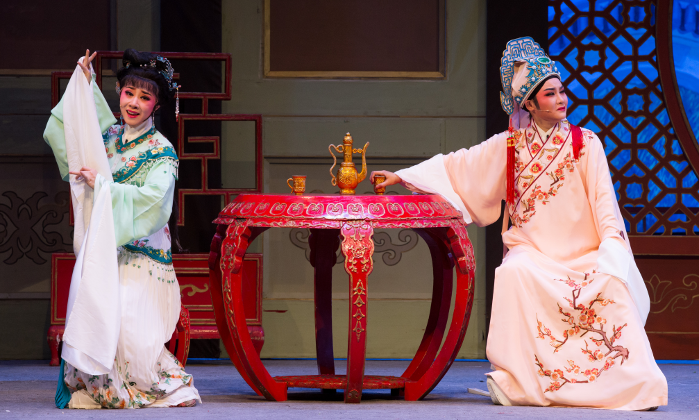 Shanghai Shaoxing Opera House’s “The Butterfly Lovers” is based on a Chinese legend of a tragic love story of a pair of lovers, Liang Shanbo and Zhu Yingtai. The legend is set in the Eastern Jin Dynasty (317-420). Zhu is the daughter of a wealthy family in Zhejiang. Although women are traditionally discouraged from taking up scholarly pursuits, Zhu manages to convince her father to allow her to attend classes disguised as a man. During her journey to Hangzhou, she meets Liang, a scholar. They feel a strong affinity for each other and Zhu gradually falls in love with Liang.