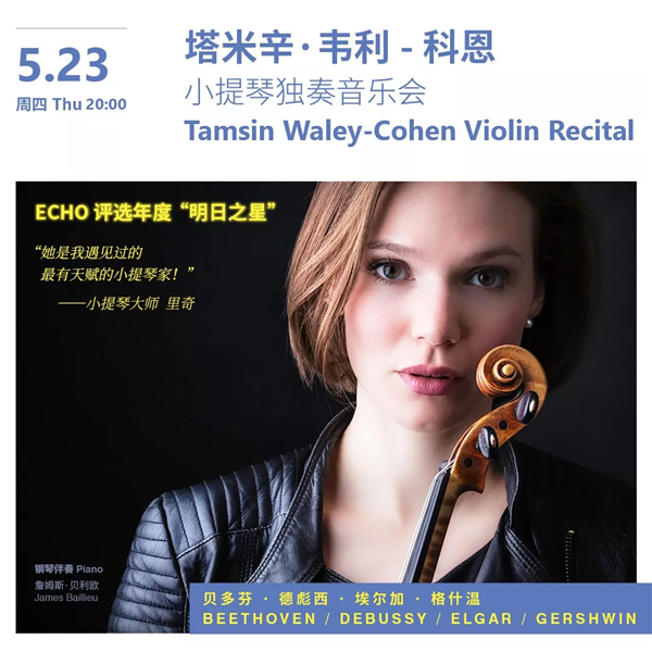 Described by The Guardian as a performer of “fearless intensity,” British violinist Tamsin Waley-Cohen will present Beethoven’s beautiful “Spring Sonata,” Debussy’s “Violin Sonata in G Minor,” Elgar’s “Violin Sonata in E Minor, Op. 82” and a Heifetz-arranged tune from Gershwin’s opera “Porgy and Bess” on May 23. Having collaborated with Czech Philharmonic Orchestra, Royal Liverpool Philharmonic Orchestra, Royal Philharmonic and London Philharmonic, Waley-Cohen has established herself as one of the most insightful and versatile young violinists.