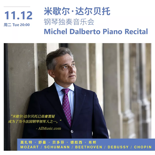 French pianist and Leeds International Piano Competition winner Michel Dalberto will also present classic pieces by Chopin, Beethoven, Debussy, Mozart and Schumann on Nov. 12.