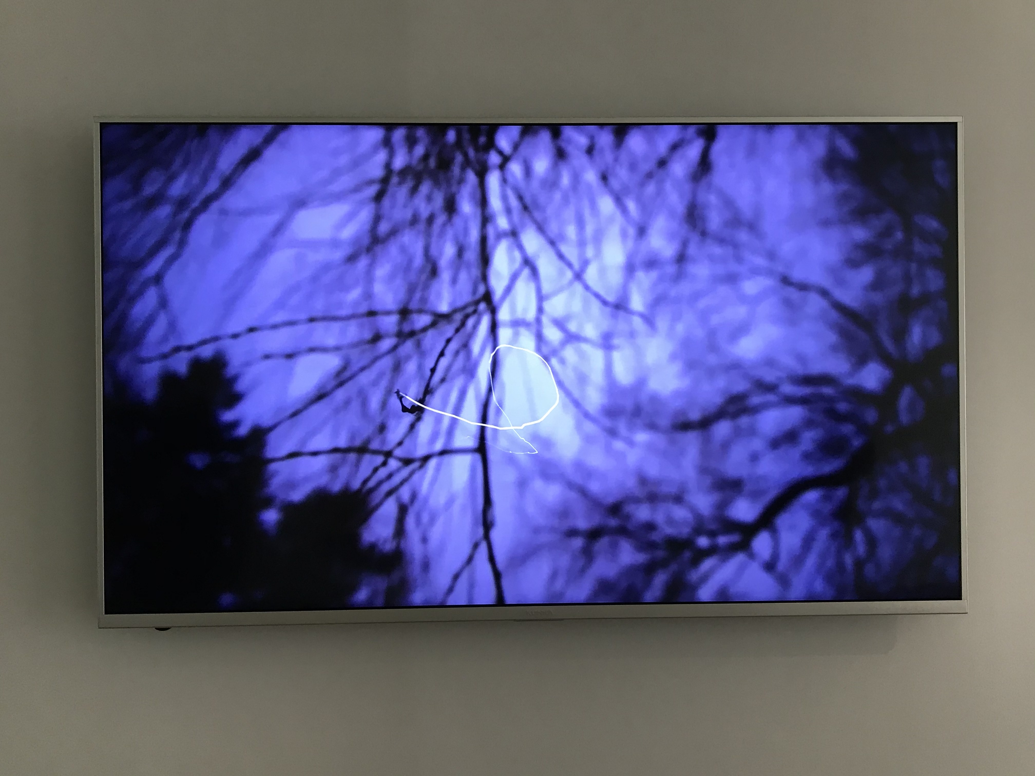Artist Anne Macmillan, who is displaying her three videos, said she is interested in the power dynamic between a subject and an object. In her “Surface Scratch,” white lines are generated based on a tree branch’s movement, and she explained that the video is a small gesture to listen, to provide a surface for inscription and a means to read what these subjects have to say, even if the translation is incomprehensible.