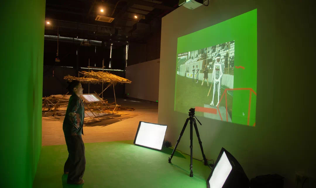 A visitor tries interactive installation “Training Pose.” Photo courtesy of OCT-LOFT