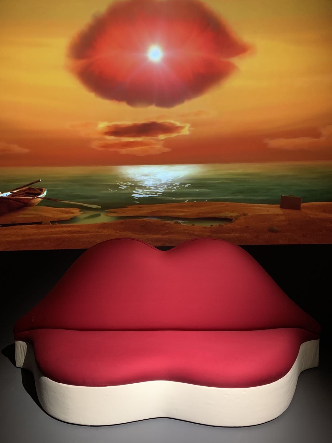 The “Eye of Dali” section mainly exhibits furniture, sculptures and paintings, the famous “Mae West Lips Sofa” among the highlights. In this work, Dali reversed his usual paranoiac-critical method of attempting to see images within objects. Here, he instead began his conception in 1936 with an actual image of Mae West’s sensual lips, then created a functional object based on it in 1974. There’s also an accompanying creative video playing beside the sofa showing the two “lip clouds” combining into one with the sun at the center of the mouth.