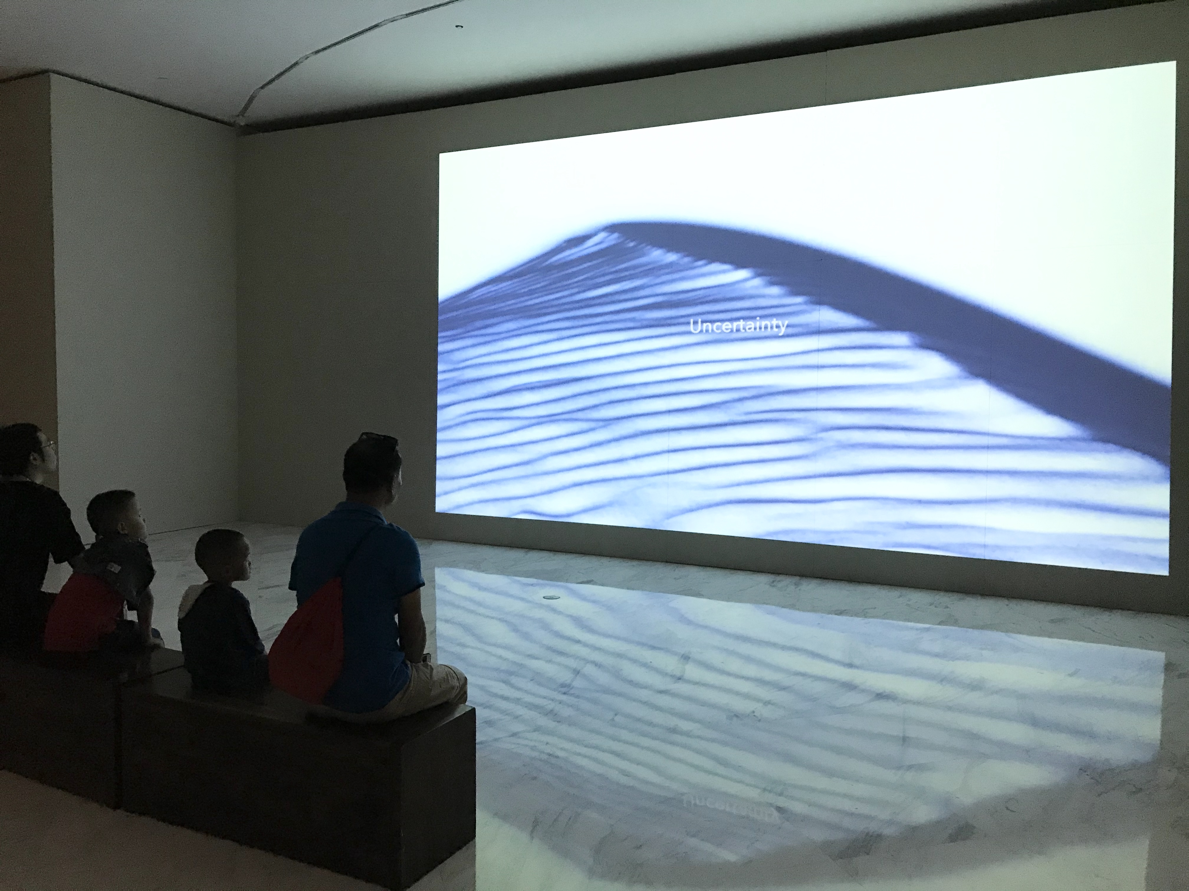 Ma’s videos and ink paintings of deserts, abstract wooden reliefs and installations of sands are accompanied by sentences expressing his feelings, such as “sand grits in the desert are all immigrants,” “the shape and material characters of a sand grit are represented by its complex and rich surface, which is a valuable trace of time and space,” and “exploring in a desert, one needs to first remove a few thoughts: conquer, overcome, challenge or show off.”